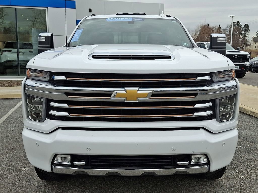 Certified.CARFAX One-Owner.2022 Chevrolet Silverado 2500HD High Country Summit White 4WD 10-Speed Automatic Duramax 6.6L V8 TurbodieselChevrolet Certified Pre-Owned Certified, 10-Speed Automatic, 4WD, Jet Black/Umber Leather, 10-Way Power Driver Seat Adjuster w/Lumbar, 10-Way Power Passenger Seat Adjuster w/Lumbar, 12-Volt Rear Auxiliary Power Outlet, 120-Volt Bed Mounted Power Outlet, 120-Volt Instrument Panel Power Outlet, 170 Amp Alternator, 220 Amp Alternator, 4-Wheel Disc Brakes, 6 Rectangular Chromed Tubular Assist Steps, 7 Speakers, 720 Cold-Cranking Amps Heavy-Duty Battery, 8 Driver Information Center, ABS brakes, Advanced Trailering System, Air Conditioning, Alloy wheels, AM/FM radio: SiriusXM with 360L, Auto-dimming door mirrors, Auto-Dimming Inside Rear-View Mirror, Auto-dimming Rear-View mirror, Automatic temperature control, Bed View Camera w/2 Trailer Camera Provisions, Black Chevytec Spray-On Bedliner w/Chevrolet Logo, Bluetooth® For Phone, BOSE Premium 7-Speaker Sound System, Brake assist, Bumpers: body-color, Chevrolet Connected Access Capable, Chrome Front Grille, Chrome Mirror Caps, Color-Keyed Carpeting Floor Covering, Compass, Deep-Tinted Glass, Delay-off headlights, Driver door bin, Driver Memory, Driver vanity mirror, Dual Charge-Only USB Ports (2nd Row), Dual front impact airbags, Dual front side impact airbags, Electric Rear-Window Defogger, Electrical Lock Control Steering Column, Electronic Cruise Control w/Set & Resume Speed, Electronic Stability Control, Engine Block Heater, Exhaust Brake, Exterior Parking Camera Rear, Floor-Mounted Center Console, Front anti-roll bar, Front Bucket Seats, Front Carpeted Floor Mats, Front Center Armrest, Front Chrome Recovery Hooks, Front dual zone A/C, Front fog lights, Front LED Fog Lamps, Front reading lights, Front wheel independent suspension, Fully automatic headlights, Garage door transmitter, Gooseneck/5th Wheel Prep Package, HD Surround Vision w/2 Trailer View Camera Provisions, Heated & Auto-Dim Pwr Vertical Trailering Mirrors, Heated 2nd Row Outboard Seats, Heated door mirrors, Heated Driver & Front Outboard Passenger Seating, Heated front seats, Heated Steering Wheel, Heated steering wheel, Hitch Guidance w/Hitch View, Illuminated entry, Integrated Trailer Brake Controller, Keyless Open & Start, Lane Change Alert w/Side Blind Zone Alert, Leather-Wrapped Steering Wheel, LED Cargo Area Lighting, LED Smoked Amber Roof Marker Lamps, Low tire pressure warning, Manual Tilt & Telescoping Steering Column, Memory seat, Navigation System, Not Equipped w/Front & Rear Park Assist, Occupant sensing airbag, OnStar & Chevrolet Connected Services Capable, Outside temperature display, Overhead airbag, Overhead console, Panic alarm, Passenger door bin, Passenger vanity mirror, Perforated Leather-Appointed Seat Trim, Polished Exhaust Tip, Power Door Locks, Power door mirrors, Power driver seat, Power Front Windows w/Driver Express Up/Down, Power Front Windows w/Passenger Express Up/Down, Power passenger seat, Power Rear Windows w/Express Down, Power Sliding Rear Window w/Defogger, Power steering, Power Sunroof, Power windows, Preferred Equipment Group 3LZ, Premium audio system: Chevrolet Infotainment 3 Premium, Radio: Chevrolet Infotainment 3 Premium System, Rear Carpeted Floor Mats, Rear Cross Traffic Alert, Rear reading lights, Rear seat center armrest, Rear step bumper, Rear Wheelhouse Liners, Rear window defroster, Remote keyless entry, Remote Vehicle Starter System, Security system, SiriusXM w/360L, Speed control, Speed-sensing steering, Split folding rear seat, Standard Tailgate, Steering Wheel Audio Controls, Steering wheel mounted audio controls, Suspension Package, Tachometer, Telescoping steering wheel, Tilt steering wheel, Traction control, Trip computer, Turn signal indicator mirrors, Ultrasonic Front & Rear Park Assist, Unauthorized Entry Theft-Deterrent System, Universal Home Remote, Up-Level Rear Seat w/Storage Package, Variably interm