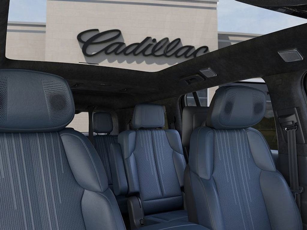 3rd row seats: split-bench, 4-Way Power Driver Lumbar Seat Adjuster, 4-Wheel Disc Brakes, 8-Way Power Driver Seat Adjuster, 8-Way Power Front Passenger Seat Adjuster, ABS brakes, Adaptive suspension, Air Conditioning, Alloy wheels, AM/FM radio: SiriusXM with 360L, Audio memory, Auto High-beam Headlights, Auto-dimming door mirrors, Auto-dimming Rear-View mirror, Auto-leveling suspension, Automatic temperature control, Black 2-Tone Roof, Bluetooth Headphones by AKG, Brake assist, Bumpers: body-color, Compass, Deep Space Center Cap, Delay-off headlights, Driver door bin, Driver vanity mirror, Dual front impact airbags, Dual front side impact airbags, Electronic Stability Control, Emergency communication system: OnStar and Cadillac connected services capable, Four wheel independent suspension, Front anti-roll bar, Front Bucket Seats, Front Center Armrest, Front dual zone A/C, Front License Plate Bracket, Front reading lights, Fully automatic headlights, Garage door transmitter, Google Built-in, Heads-Up Display, Heated door mirrors, Heated Driver and Front Passenger Seats, Heated front seats, Heated rear seats, Heated steering wheel, Hudson Metallic Nameplates, HVAC memory, Illuminated entry, Knee airbag, Leather steering wheel, Low tire pressure warning, Magnetic Ride Control Suspension, Memory seat, Navigation system: Google Automotive Services Capable, Occupant sensing airbag, Onyx Package, Outside temperature display, Overhead airbag, Overhead console, Panic alarm, Passenger door bin, Passenger vanity mirror, Power door mirrors, Power driver seat, Power Liftgate, Power passenger seat, Power steering, Power windows, Puddle Lamps, Radio data system, Radio: Infotainment Experience, Rain sensing wipers, Rear air conditioning, Rear anti-roll bar, Rear dual zone A/C, Rear reading lights, Rear Seat Entertainment System, Rear window defroster, Rear window wiper, Reconfigurable Full-Color Head-Up Display, Remote keyless entry, Security system, SiriusXM with 360L Trial Subscription, Speed control, Speed-sensing steering, Split folding rear seat, Spoiler, Steering wheel mounted audio controls, Telescoping steering wheel, Tilt steering wheel, Traction control, Trip computer, Turn signal indicator mirrors, Variably intermittent wipers, Ventilated front seats, Wheels: 24 7-Spoke Diamond Cut Face Alloy, Wheels: 24 Deep Space Alloy.