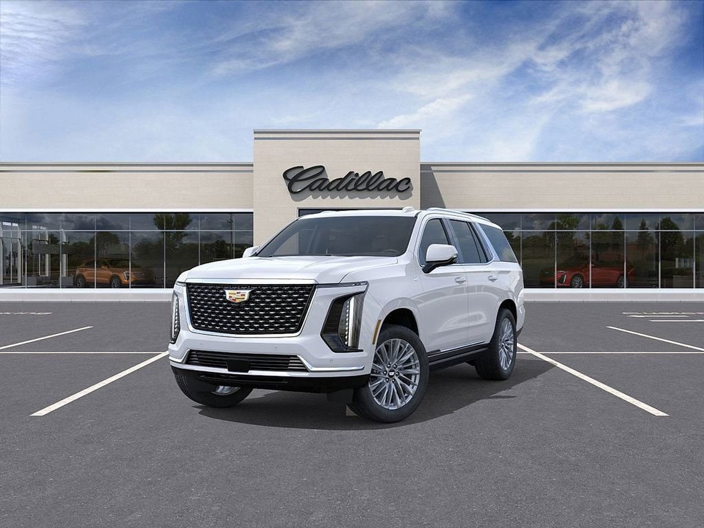 Vibrant White 2026 Cadillac Escalade Luxury 4WD 10-Speed Automatic with Overdrive 6.2L V8 4WD, Black Leather, 2-Presets Memory For Driver Seat Adjuster, 2-Speed Active Transfer Case, 21 Speakers, 3.23 Axle Ratio, 3rd row seats: split-bench, 4-Way Power Driver Lumbar Seat Adjuster, 4-Way Power Front Passenger Lumbar Seat Adjuster, 4-Wheel Disc Brakes, 8-Way Power Driver Seat Adjuster, 8-Way Power Front Passenger Seat Adjuster, ABS brakes, Adaptive suspension, Air Conditioning, AKG Studio 21-Speaker Audio System, Alloy wheels, AM/FM radio: SiriusXM with 360L, Apple CarPlay/Android Auto, Audio memory, Auto High-beam Headlights, Auto tilt-away steering wheel, Auto-dimming door mirrors, Auto-dimming Rear-View mirror, Automatic temperature control, Blind Zone Steering Assist with Trailering, Brake assist, Bumpers: body-color, Compass, Delay-off headlights, Door Lock and Latch Shields, Driver door bin, Driver vanity mirror, Dual front impact airbags, Dual front side impact airbags, Electronic Limited-Slip Differential, Electronic Stability Control, Emergency communication system: OnStar Services capable, Exterior Parking Camera Rear, Four wheel independent suspension, Front anti-roll bar, Front Bucket Seats, Front Center Armrest w/Storage, Front dual zone A/C, Front License Plate Bracket, Front reading lights, Fully automatic headlights, Garage door transmitter, Glass Breakage Sensor, Heads-Up Display, Heated and Ventilated Driver and Front Passenger Seats, Heated door mirrors, Heated Driver and Front Passenger Seats, Heated front seats, Heated rear seats, Heated steering wheel, Hitch Guidance with Hitch View, Illuminated entry, Illuminating Front and Rear Sill Plates, Integrated Trailer Brake Controller, Knee airbag, Lane Departure Warning System, Leather Seating Surfaces with Precision Perforated Inserts, Low tire pressure warning, Magnetic Ride Control Suspension, Memory seat, Navigation System, Occupant sensing airbag, Outside temperature display, Overhead airbag, Overhead console, Panic alarm, Passenger door bin, Passenger vanity mirror, Power door mirrors, Power driver seat, Power Liftgate, Power moonroof, Power Panoramic Tilt-Sliding Sunroof, Power passenger seat, Power steering, Power windows, Power-Retractable Assist Steps, Preferred Equipment Group 1SB, Radio data system, Radio: Infotainment Experience, Rain sensing wipers, Rear air conditioning, Rear anti-roll bar, Rear reading lights, Rear window defroster, Rear window wiper, Reconfigurable Full-Color Head-Up Display, Remote keyless entry, Security system, SiriusXM with 360L Trial Subscription, Smart Trailer Integration Indicator, Speed control, Split folding rear seat, Spoiler, Steering wheel memory, Steering wheel mounted audio controls, Tachometer, Telescoping steering wheel, Theft-Deterrent Alarm System, Tilt steering wheel, Traction control, Trailering App, Trailering Assist Guidelines, Trip computer, Turn signal indicator mirrors, Variably intermittent wipers, Vehicle Inclination Sensor, Vehicle Interior Movement Sensor, Ventilated front seats, Voltmeter, Wheel Locks, Wheels: 22 9-Spoke Alloy with Polished Finish, Wireless Apple CarPlay/Wireless Android Auto, 4WD, Black Leather.