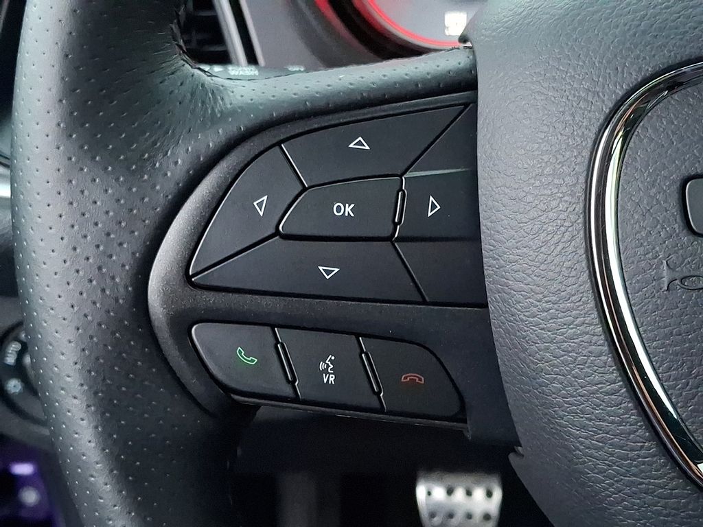 1-Yr SiriusXM Guardian Trial, 230MM Rear Axle, 4-Wheel Disc Brakes, 4G LTE Wi-Fi Hot Spot, 6 Speakers, 8.4" Touchscreen Display, ABS brakes, Air Conditioning, Alloy wheels, AM/FM radio: SiriusXM, Anti-whiplash front head restraints, Apple CarPlay, Apple CarPlay/Android Auto, Auto-dimming Rear-View mirror, Automatic temperature control, Brake assist, Bumpers: body-color, Center Rear 3-Point Seat Belt, Child Seat Upper Tether Anchorages, Compass, Delay-off headlights, Driver Convenience Group, Driver door bin, Driver vanity mirror, Dual front impact airbags, Dual front side impact airbags, Electronic Stability Control, Emergency communication system: SiriusXM Guardian, Four wheel independent suspension, Front anti-roll bar, Front Bucket Seats, Front Center Armrest, Front dual zone A/C, Front fog lights, Front Passenger Seat, Front Passenger Seat Belt Alert, Front reading lights, Fully automatic headlights, Garage door transmitter, Google Android Auto, GPS Antenna Input, GPS Navigation, HD Radio, Heated door mirrors, Heated front seats, Heated Steering Wheel, Heated steering wheel, Illuminated entry, Integrated Center Stack Radio, Integrated Voice Command w/Bluetooth, Leather Shift Knob, Low tire pressure warning, Media Hub (2 USB, AUX), MOPAR Black Hood Pin Kit, Outside temperature display, Overhead airbag, Overhead console, Panic alarm, ParkView Rear Back-Up Camera, Passenger door bin, Passenger vanity mirror, Plus Package, Power door mirrors, Power driver seat, Power Multi-Function Foldaway Mirrors, Power steering, Power Sunroof, Power windows, Quick Order Package 23G R/T Scat Pack, Radio data system, Radio: Uconnect 4C w/8.4" Display, Rear anti-roll bar, Rear reading lights, Rear seat center armrest, Rear window defroster, Remote keyless entry, Rhombi 2-Pc Wheel Center Cap, Scat Pack Logo Houndstooth Seat, Security system, SiriusXM Satellite Radio, SiriusXM Traffic Plus, SiriusXM Travel Link, Speed control, Speed-sensing steering, Split folding rear seat, Spoiler, Sport steering wheel, Steering wheel mounted audio controls, T/A Package, Tachometer, Telescoping steering wheel, Tilt steering wheel, Traction control, Trip computer, Uconnect 4C Nav w/8.4" Display, USB Host Flip, Variably intermittent wipers, Wheels: 20" x 9.0" Black Noise, Wheels: 20" x 9.5" Forged/Painted Aluminum.