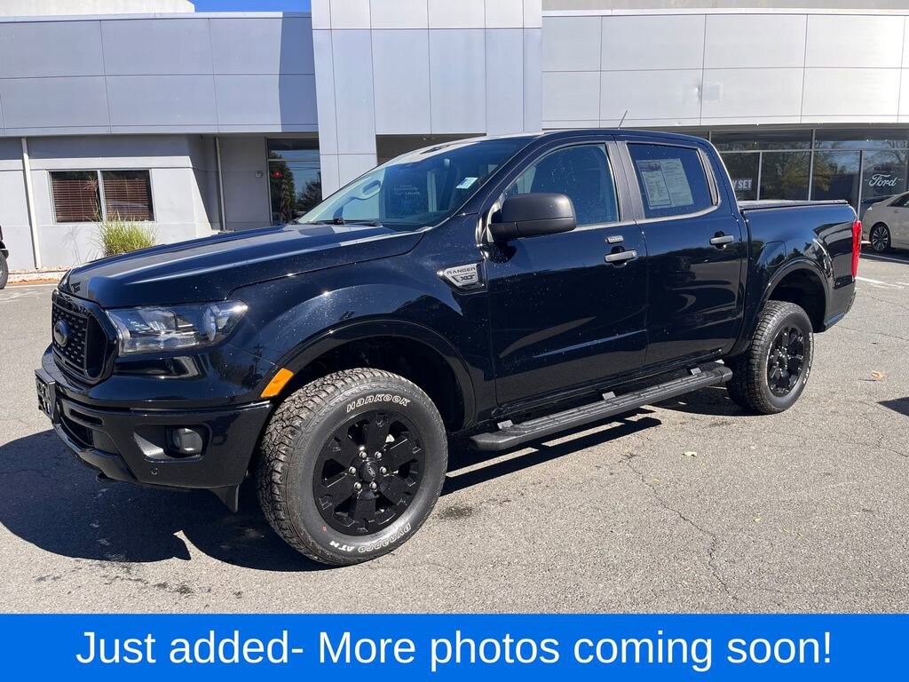 2021 Ford Ranger XLT Shadow Black 4WD 10-Speed Automatic EcoBoost 2.3L I4 GTDi DOHC Turbocharged VCT 4WD, 110V AC Power Outlet, 4-Wheel Disc Brakes, 5' Rectangular Black Running Boards, 6 Speakers, ABS brakes, Adaptive Cruise Control, Air Conditioning, Alloy wheels, AM/FM radio: SiriusXM, AM/FM Stereo, Auto High-beam Headlights, Auto-Dimming Rear-View Mirror, Automatic temperature control, Black Appearance Package, Black Grille w/Black Surround, Black Grille w/Magnetic Surround, Black Wheel-Lip Molding, Body-Color Front Rear Bumpers, Brake assist, Bumpers: body-color, Class IV Trailer Hitch Receiver, Compass, Dark Box Decal, Delay-off headlights, Driver door bin, Dual front impact airbags, Dual front side impact airbags, Electronic Stability Control, Emergency communication system: SYNC 3 911 Assist, Equipment Group 302A High, Exterior Parking Camera Rear, Forward Sensing System, Front anti-roll bar, Front Bucket Seats, Front Center Armrest, Front dual zone A/C, Front fog lights, Front Premium Cloth Bucket Seats, Front reading lights, Front wheel independent suspension, Fully automatic headlights, FX4 Off-Road Box Decal, FX4 Off-Road Package, Heated Front Seats, Illuminated entry, Leather-Wrapped Shifter, Leather-Wrapped Steering Wheel, Low tire pressure warning, Magnetic Front Rear Bumper, Manual-Sliding Rear-Window, Navigation, Occupant sensing airbag, Off-Road Screen in Cluster, Off-Road Tuned Suspension, Outside temperature display, Overhead airbag, Overhead console, Panic alarm, Passenger door bin, Power door mirrors, Power steering, Power windows, Power-Folding Sideview Mirrors w/Power Glass, Rear reading lights, Rear seat center armrest, Rear step bumper, Rear window defroster, Remote keyless entry, Remote Start, Reverse Sensing System, SecuriCode Keyless-Entry Keypad, Security system, SiriusXM Satellite Radio, Speed control, Speed-sensing steering, Sport Appearance Package, Sport Box Decal, Steering wheel mounted audio controls, SYNC 3, SYNC 3/Apple CarPlay/Android Auto, Technology Package, Telescoping steering wheel, Terrain Management System, Tilt steering wheel, Tough Bed Spray-In Bedliner, Traction control, Trailer Tow Package, Tray Style Floor Liner w/Carpet Floor Mats, Trip computer, Variably intermittent wipers, Voltmeter, Wheels: 17' Magnetic Painted Aluminum Sport, Wheels: 17' Silver-Painted Aluminum, Wheels: 18' Black Painted Aluminum, 4WD.