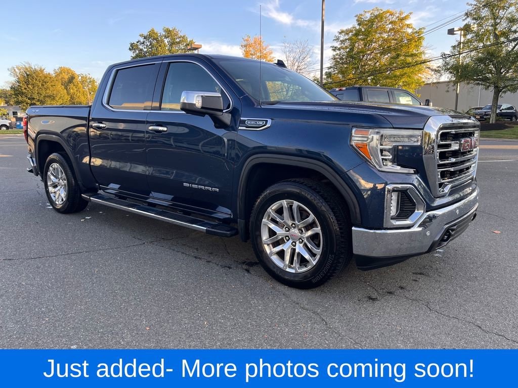 2020 GMC Sierra 1500 SLT Pacific Blue Metallic 4WD 10-Speed Automatic EcoTec3 5.3L V8 10-Speed Automatic, 4WD, Jet Black w/Perforated Leather-Appointed Front Seat Trim, 10-Way Power Driver Seat Adjuster w/Lumbar, 10-Way Power Passenger Seat Adjuster w/Lumbar, 12-Volt Rear Auxiliary Power Outlet, 120-Volt Bed Mounted Power Outlet, 120-Volt Instrument Panel Power Outlet, 170 Amp Alternator, 2 USB Ports, 2 USB Ports (1st Row), 20' x 9' Polished Aluminum Wheels, 3.23 Rear Axle Ratio, 4-Wheel Disc Brakes, 4G LTE Wi-Fi Hotspot Capable, 6 Speakers, 6-Speaker Audio System Feature, ABS brakes, Adaptive Cruise Control - Camera, Air Conditioning, Alloy wheels, AM/FM radio: SiriusXM with 360L, Apple CarPlay/Android Auto, Auto-dimming door mirrors, Auto-dimming Rear-View mirror, Automatic Emergency Braking, Automatic temperature control, Auxiliary External Transmission Oil Cooler, Brake assist, Bumpers: chrome, Chrome Grille, Chrome Wheel To Wheel Assist Steps, Color-Keyed Carpeting Floor Covering, Compass, Deep-Tinted Glass, Delay-off headlights, Driver Alert Package I, Driver Alert Package II, Driver door bin, Driver Memory, Driver vanity mirror, Dual front impact airbags, Dual front side impact airbags, Electric Rear-Window Defogger, Electrical Lock Control Steering Column, Electronic Stability Control, Floor-Mounted Center Console, Following Distance Indicator, Forward Collision Alert, Front 40/20/40 Split-Bench Seat, Front anti-roll bar, Front Bucket Seats, Front Center Armrest w/Storage, Front dual zone A/C, Front fog lights, Front Frame-Mounted Black Recovery Hooks, Front Pedestrian Braking, Front reading lights, Front wheel independent suspension, Fully automatic headlights, GMC Connected Access Capable, HD Radio, Heated 2nd Row Outboard Seats, Heated door mirrors, Heated Driver Front Outboard Passenger Seating, Heated front seats, Heated steering wheel, Heavy Duty Suspension, Heavy-Duty Rear Locking Differential, Hitch Guidance, Hitch Guidance w/Hitch View, Illuminated entry, In-Vehicle Trailering App, Integrated Trailer Brake Controller, IntelliBeam Automatic High Beam On/Off, Keyless Open Start, Lane Change Alert w/Side Blind Zone Alert, Lane Keep Assist w/Lane Departure Warning, LED Cargo Area Lighting, Low tire pressure warning, Manual Tilt-Wheel Telescoping Steering Column, Memory seat, Occupant sensing airbag, OnStar GMC Connected Services Capable, Outside temperature display, Overhead airbag, Overhead console, Panic alarm, Passenger door bin, Passenger vanity mirror, Perforated Leather-Appointed Front Seat Trim, Perimeter Lighting, Power Door Locks, Power door mirrors, Power driver seat, Power Front Passenger Windows w/Express Up/Down, Power Front Windows w/Driver Express Up/Down, Power passenger seat, Power Rear Windows w/Express Down, Power Sliding Rear Window w/Rear Defogger, Power steering, Power Sunroof, Power windows, Preferred Equipment Group 4SA, Premium audio system: GMC Infotainment System, Premium Bose 7-Speaker Sound System, ProGrade Trailering System, Radio data system, Radio: Premium GMC Infotainment Sys w/Multi-Touch, Radio: Premium GMC Infotainment Sys w/Navigation, Rear Cross Traffic Alert, Rear Dual USB Charging-Only Ports, Rear reading lights, Rear seat center armrest, Rear step bumper, Rear Wheelhouse Liners, Rear window defroster, Remote keyless entry, Remote Vehicle Starter System, Safety Alert Seat, Security system, SiriusXM w/360L, SLT Convenience Package, SLT Preferred Package, SLT Premium Plus Package, Speed control, Speed-sensing steering, Split folding rear seat, Spray-On Pickup Bed Liner w/GMC Logo, Steering Wheel Audio Controls, Steering wheel mounted audio controls, Tachometer, Telescoping steering wheel, Theft Deterrent System (Unauthorized Entry), Tilt steering wheel, Traction control, Trailering Package, Trip computer, Ultrasonic Front Rear Park Assist, Universal Home Remote, Variably intermittent wipers, Ventilated Driver Front Passenger Seats, Voltmeter, Wheels: 18' x 8