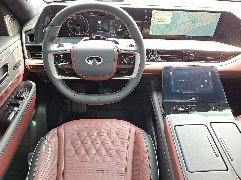 2025 INFINITI QX80 AUTOGRAPH Dynamic Metal/Black Obsidian 4WD 9-Speed Automatic 3.5L V6 DOHC 24V3rd row seats: bench, 4-Wheel Disc Brakes, ABS brakes, Adaptive suspension, Air Conditioning, Alloy wheels, AM/FM radio: SiriusXM with 360L, Anti-whiplash front head restraints, Apple CarPlay/Android Auto, Audio memory, Auto High-beam Headlights, Auto tilt-away steering wheel, Auto-dimming door mirrors, Auto-dimming Rear-View mirror, Auto-leveling suspension, Automatic temperature control, Brake assist, Bumpers: body-color, Center Front Spoiler, Climate Controlled Front Bucket Seats w/Massage, Compass, Delay-off headlights, Driver door bin, Driver vanity mirror, Dual front impact airbags, Dual front side impact airbags, Electronic Stability Control, Emergency communication system: INFINITI InTouch, Four wheel independent suspension, Front anti-roll bar, Front Bucket Seats, Front Center Armrest, Front dual zone A/C, Front reading lights, Fully automatic headlights, Garage door transmitter: myQ Connected Garage, Genuine wood dashboard insert, Genuine wood door panel insert, Heads-Up Display, Heated door mirrors, Heated front seats, Heated rear seats, Heated steering wheel, HVAC memory, Illuminated entry, Knee airbag, Leather steering wheel, Literature Kit, Low tire pressure warning, Memory seat, Navigation system: Google Built-in, Occupant sensing airbag, Outside temperature display, Overhead airbag, Overhead console, Panic alarm, Passenger door bin, Passenger vanity mirror, Power door mirrors, Power driver seat, Power Liftgate, Power moonroof, Power passenger seat, Power steering, Power windows, Premium Paint, Radio data system, Radio: Klipsch Reference Premiere Audio System, Rain sensing wipers, Rear air conditioning, Rear anti-roll bar, Rear reading lights, Rear seat center armrest, Rear window defroster, Rear window wiper, Reclining 3rd row seat, Remote keyless entry, Security system, Semi-Aniline Premium Leather Seating Surfaces, Speed control, Speed-sensing steering, Split folding rear seat, Spoiler, Steering wheel memory, Steering wheel mounted audio controls, Tachometer, Telescoping steering wheel, Tilt steering wheel, Traction control, Trip computer, Turn signal indicator mirrors, Variably intermittent wipers, Ventilated front seats, Ventilated rear seats, Wheels: 22 x 8 Cast Aluminum Alloy.