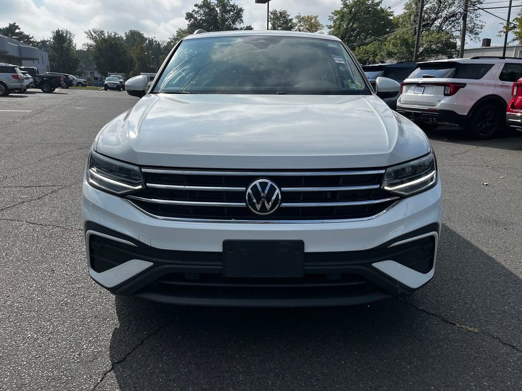 2022 Volkswagen Tiguan 2.0T SE Oryx White Pearl AWD 8-Speed Automatic with Tiptronic 2.0L TSI DOHC AWD, 3.33 Axle Ratio, 4-Wheel Disc Brakes, 4-Wheel Independent Suspension, 6 Speakers, ABS brakes, Air Conditioning, Alloy wheels, AM/FM radio: SiriusXM with 360L, Auto-dimming Rear-View mirror, Automatic temperature control, Brake assist, Bumpers: body-color, Compass, Delay-off headlights, Driver door bin, Driver vanity mirror, Dual front impact airbags, Dual front side impact airbags, Electronic Stability Control, Emergency communication system: Car-Net, Exterior Parking Camera Rear, Four wheel independent suspension, Front anti-roll bar, Front Bucket Seats, Front Center Armrest, Front dual zone A/C, Front reading lights, Fully automatic headlights, Heated door mirrors, Heated Front Comfort Seats, Heated front seats, Illuminated entry, Leather Shift Knob, Low tire pressure warning, Occupant sensing airbag, Outside temperature display, Overhead airbag, Overhead console, Panic alarm, Passenger door bin, Passenger vanity mirror, Perforated V-Tex Leatherette Seating Surfaces, Power door mirrors, Power driver seat, Power Liftgate, Power steering, Power windows, Radio data system, Radio: MIB3 Composition Media AM/FM/HD, Rain sensing wipers, Rear anti-roll bar, Rear reading lights, Rear seat center armrest, Rear window defroster, Rear window wiper, Remote keyless entry, Roof rack: rails only, Security system, Speed control, Speed-sensing steering, Split folding rear seat, Spoiler, Steering wheel mounted audio controls, Tachometer, Telescoping steering wheel, Tilt steering wheel, Traction control, Trip computer, Turn signal indicator mirrors, Variably intermittent wipers, Wheels: 18' Dark Graphite 10-Spoke Alloy, AWD.
